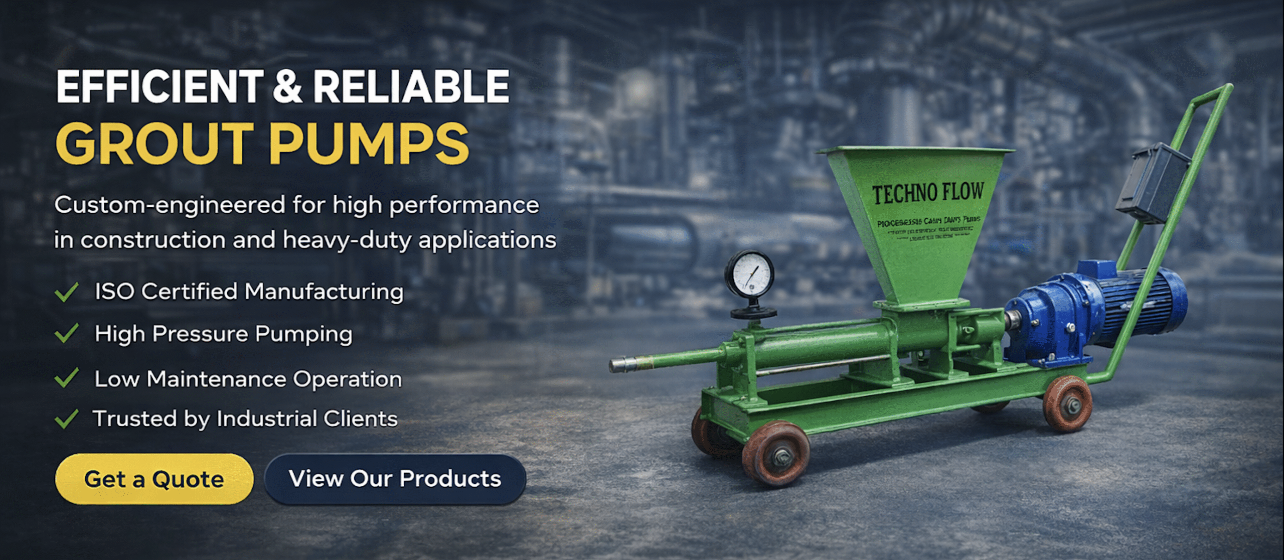Techno Engineering Industries, based in Kanpur, India, develops, manufactures and markets high-quality industrial screw pumps, grout pumps, dosing pumps, slurry pumps and barrel pumps for handling low to highly viscous, aggressive and abrasive media. With years of engineering expertise and a strong distribution network, our products are supplied successfully to industries across multiple states in India and international markets.